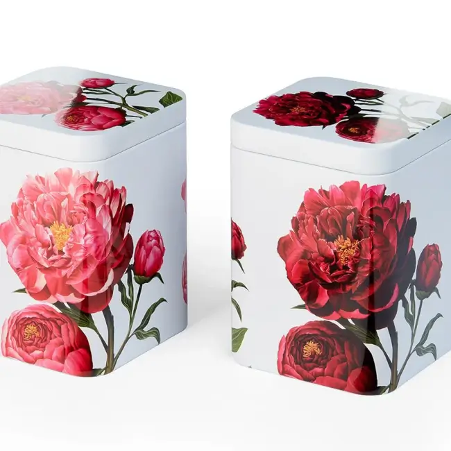 De pioenroos, of paeonia officinalis, is in de feestelijke maand mei met haar overvloedige bloemenpracht een ware blikvanger die zowel in de border als in de vaas alle aandacht trekt. Of het nu donkerroze, bramenkleurig of felroze is, de diepe kleuren zijn echte eyecatchers en stralen een ongeëvenaarde intensiteit uit. Deze bus is versierd met een gedetailleerd decor van deze bijzondere bloem. Het geïllustreerde ontwerp is met veel aandacht voor details gemaakt en heeft daardoor een bijna fotorealistische uitstraling. De moderne vorm van het blik, met naar binnen gerolde dekselrand, overtuigt door de spannende combinatie van een matwitte buitenkant en een glanzend bloemmotief. De bus is geschikt voor het bewaren van ongeveer 100 gram thee.