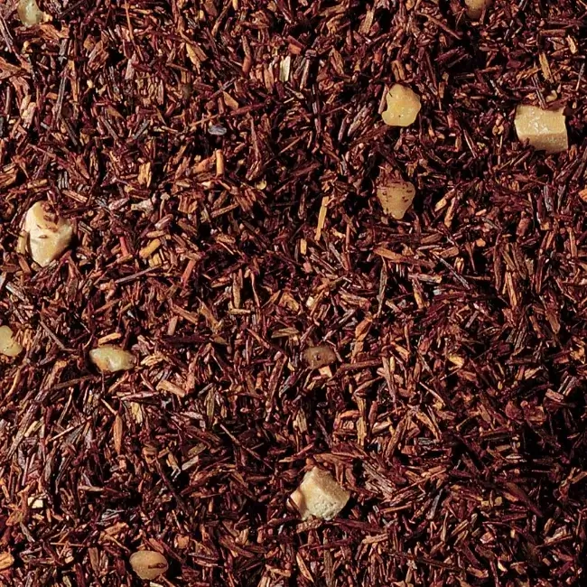 Rooibos, stukjes roomkaramel (gecondenseerde en gesuikerde halfvolle melk, suiker, glucosestroop, geconcentreerde boter, bevochtiger; sorbitol, emulgator, mono- en diglycerides van vetzuren), krokante stukjes (suiker, hazelnoten, invertsuiker), aroma